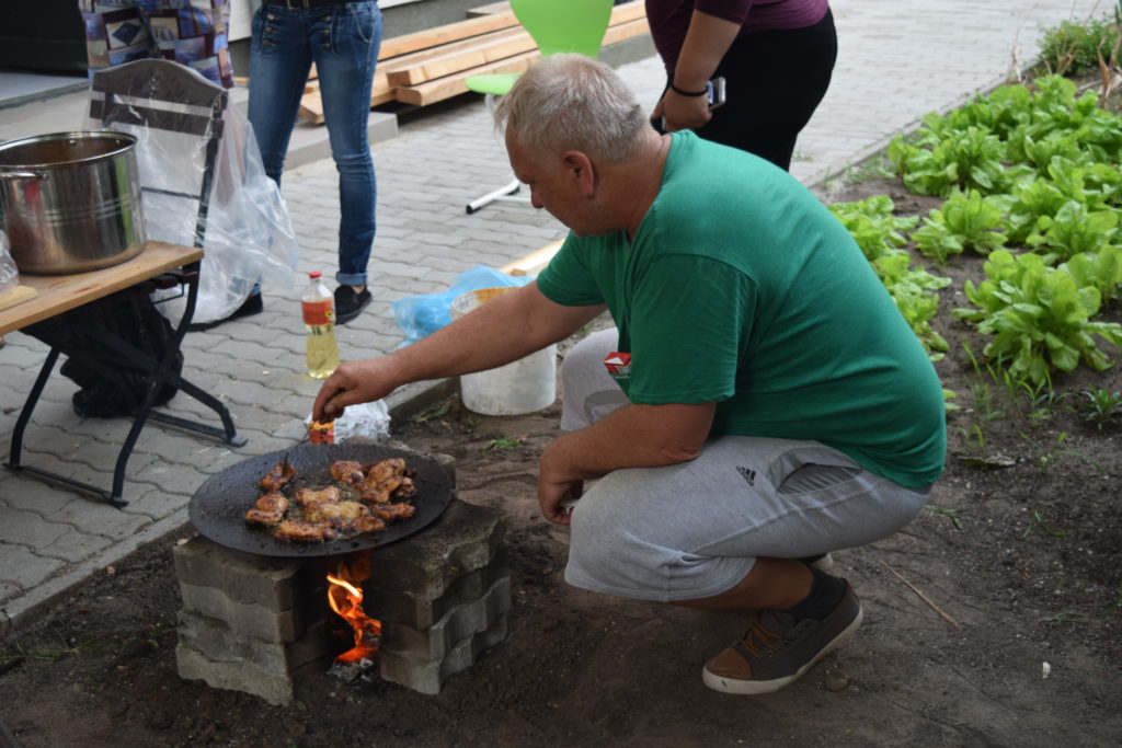 Ez idő alatt már javában sült a csirkemell, a csirkeszárny és a kolbász a szakkollégium udvarán: ahogyan igazgatónk, Káli-Horváth Kálmán fogalmazott, az intézmény gondnoka, Borkó László hamar füstjelekkel adta tudtunkra a finomságok készülését.